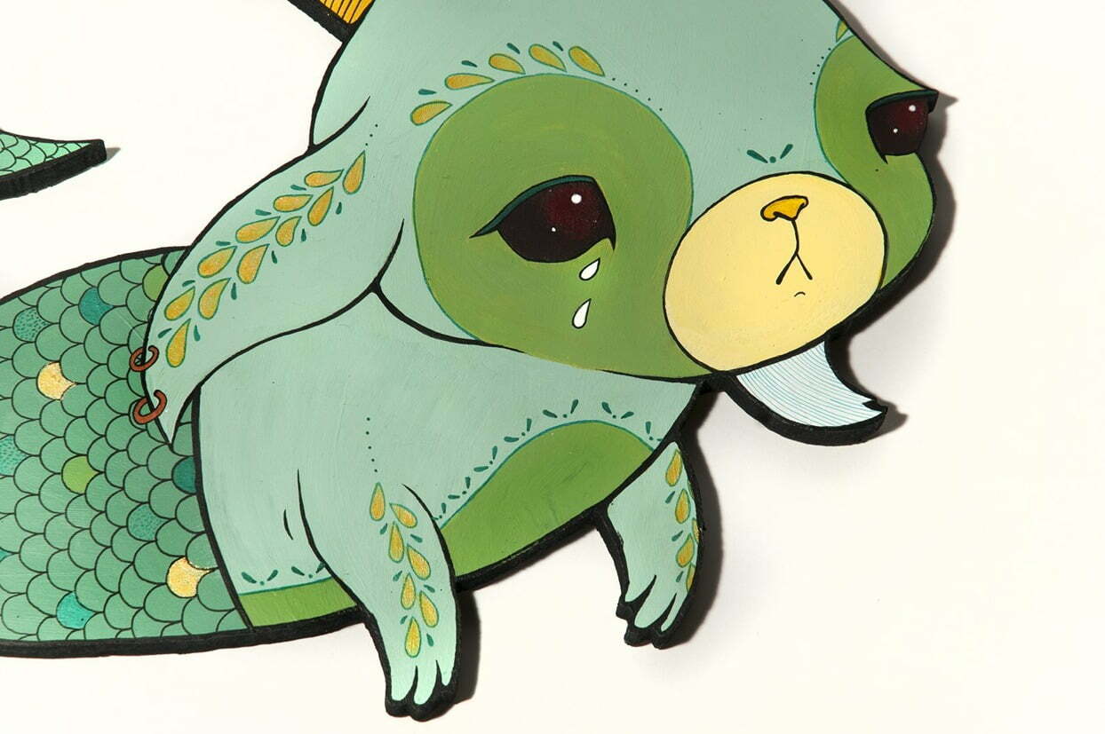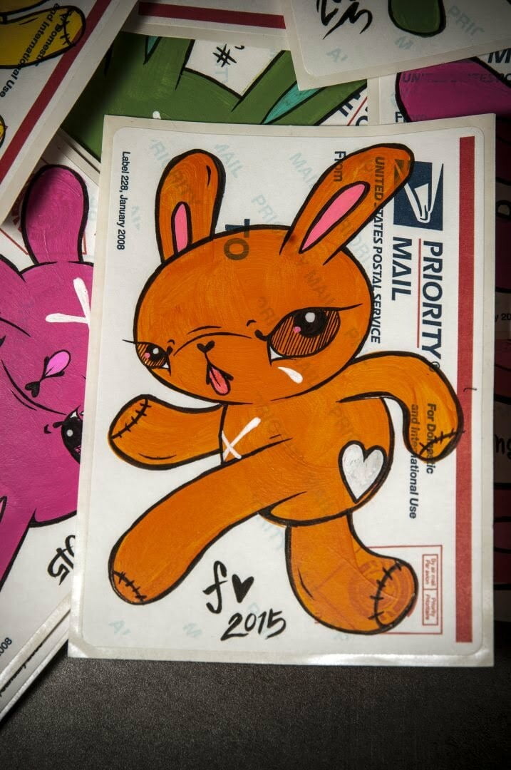 Flavia Chan is a graduate of Emily Carr University, now attending classes in BCIT’s Marketing program. Her artwork is at once haunting and beautiful. She draws the sadness inspired in her work from real life experiences, but finds her creative characters a much more comfortable outlet than depictions of real people. Every one of her unique characters — from her painstakingly detailed Munnies, to her cvibrant full-colour panels and prints, to the “slap bunnies” she borrows from grafitti culture — comes with its own story, and no character is exempt from the bitter sweetness.