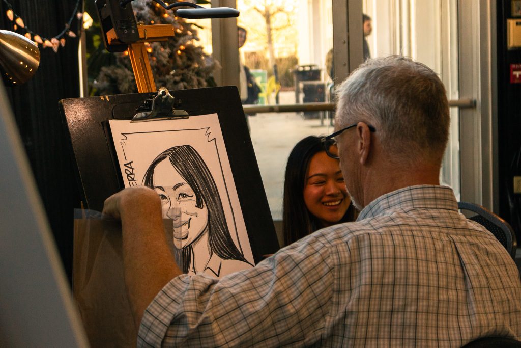 Two stations shaped the Winter Fest’s rhythm: the crafts table and the caricature booth. The crafts area offered ornaments, stickers, and paints—small items that created moments of calm. “It is really nice to sit down and do something that relaxes,” a student said.