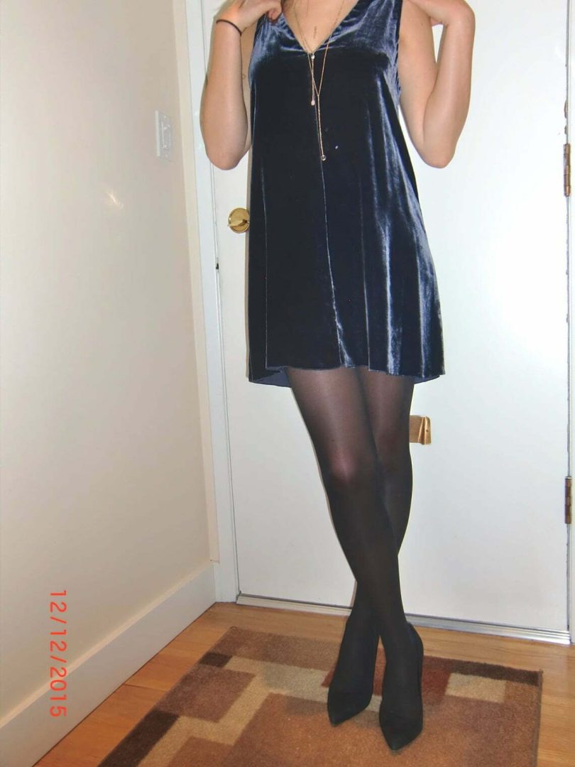 One last thing to keep in mind is the length. Know who else is going to the party. If it is a family affair, don’t make grandma faint because of your hemline! Be respectful and classy with a knee-length hem, and translucent or opaque tights.