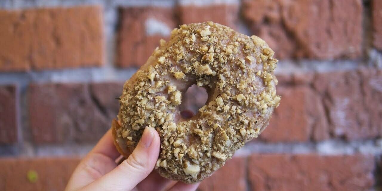 The Smoked Maple Walnut Donut is the perfect sweet and savoury combination. The spicy, smoked walnut smell reminds me of camping and the donut bed is just as plush as the Chocolate Glaze Donut.