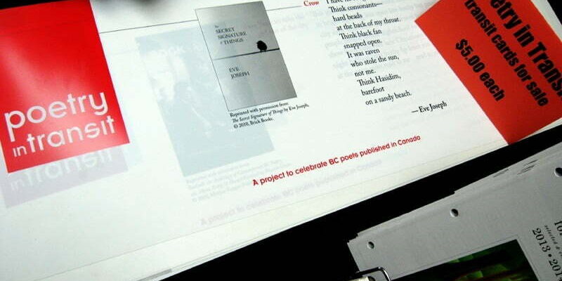 Poetry in Transit is well-known to Lower Mainland commuters for the short poetry pieces on public transit a fun concept that makes bus and SkyTrain trips more interesting. Poems that have been featured on buses were on sale for $5.